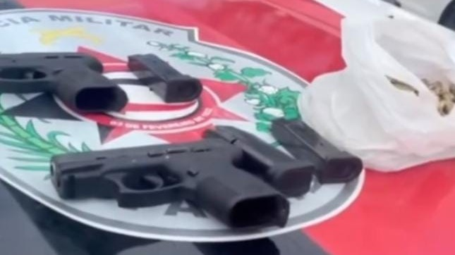 Com o trio, a polícia apreendeu dois revólveres, uma pistola ponto 40 e uma 9 milímetros, além de cerca de 100 munições.